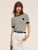 %100 Pamuklu Çizgili Kadın Ajurlu Örgü Tişört