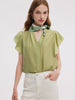 Asetat Karışımlı V Yaka Kadın Volanlı Kollu Bluz