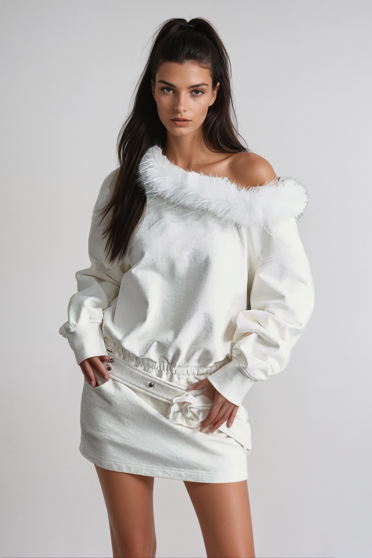 Agnethe Kürk Çiçek Tokalı Mini Elbise