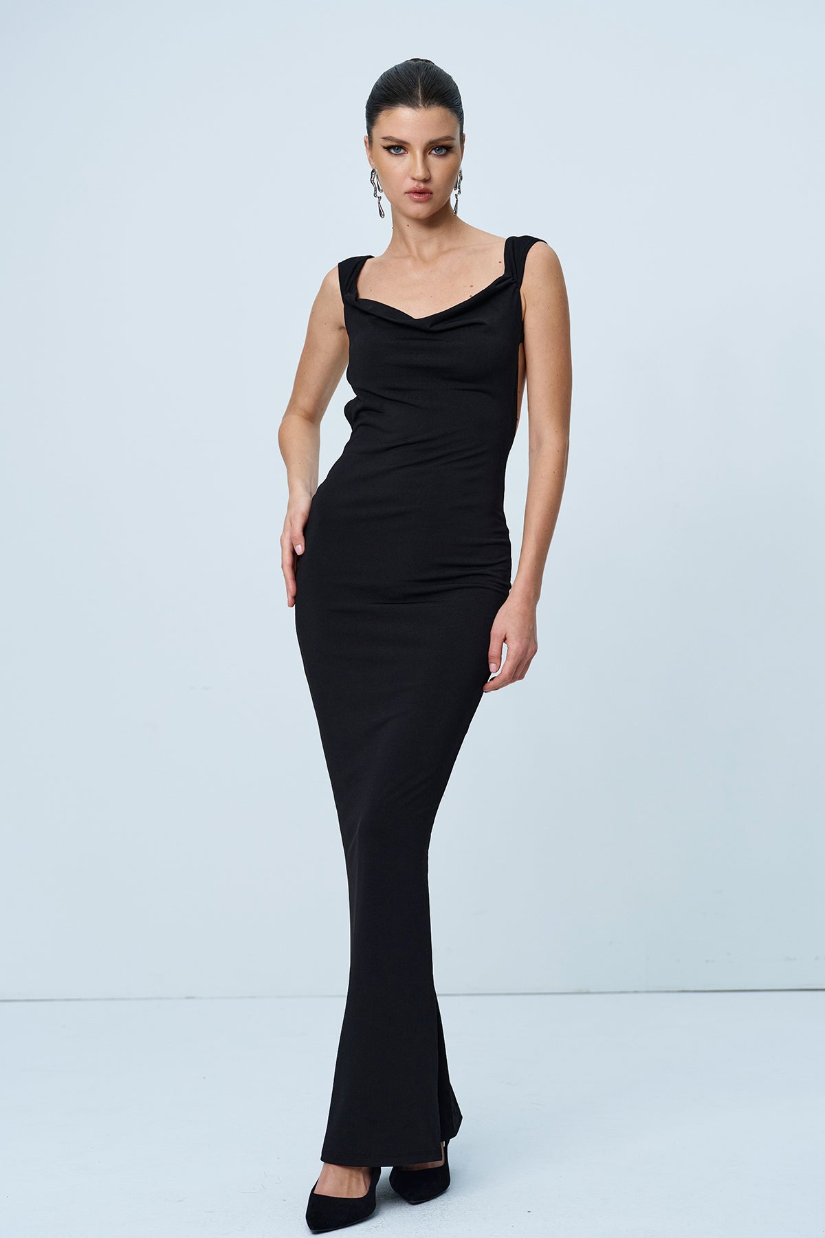 Anise Sırtı Açık Fiyonklu Uzun Elbise