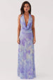 Bu zarif maksi elbise, düşük dekolteli yaka, boyundan bağlamalı tasarım ve açık sırt ile sofistike ve çekici bir görünüm yaratıyor. Dantelli bel ve yarı transparan şifon kumaş hoş bir dokunuş katarken, kravat detayı elbisenin zarif siluetini güçlendiriyor.