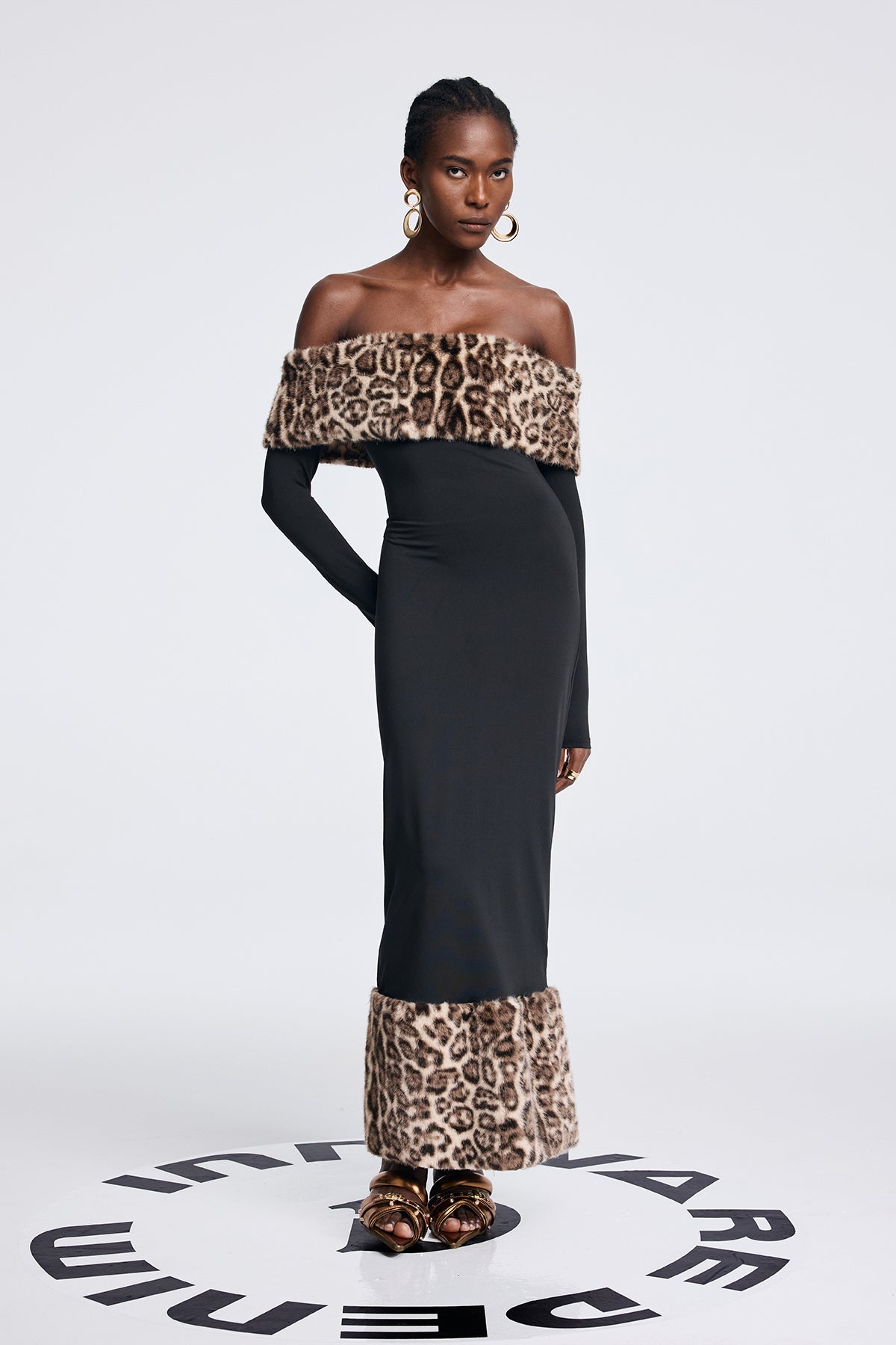 Anya Omuz Açık Leopar Uzun Elbise