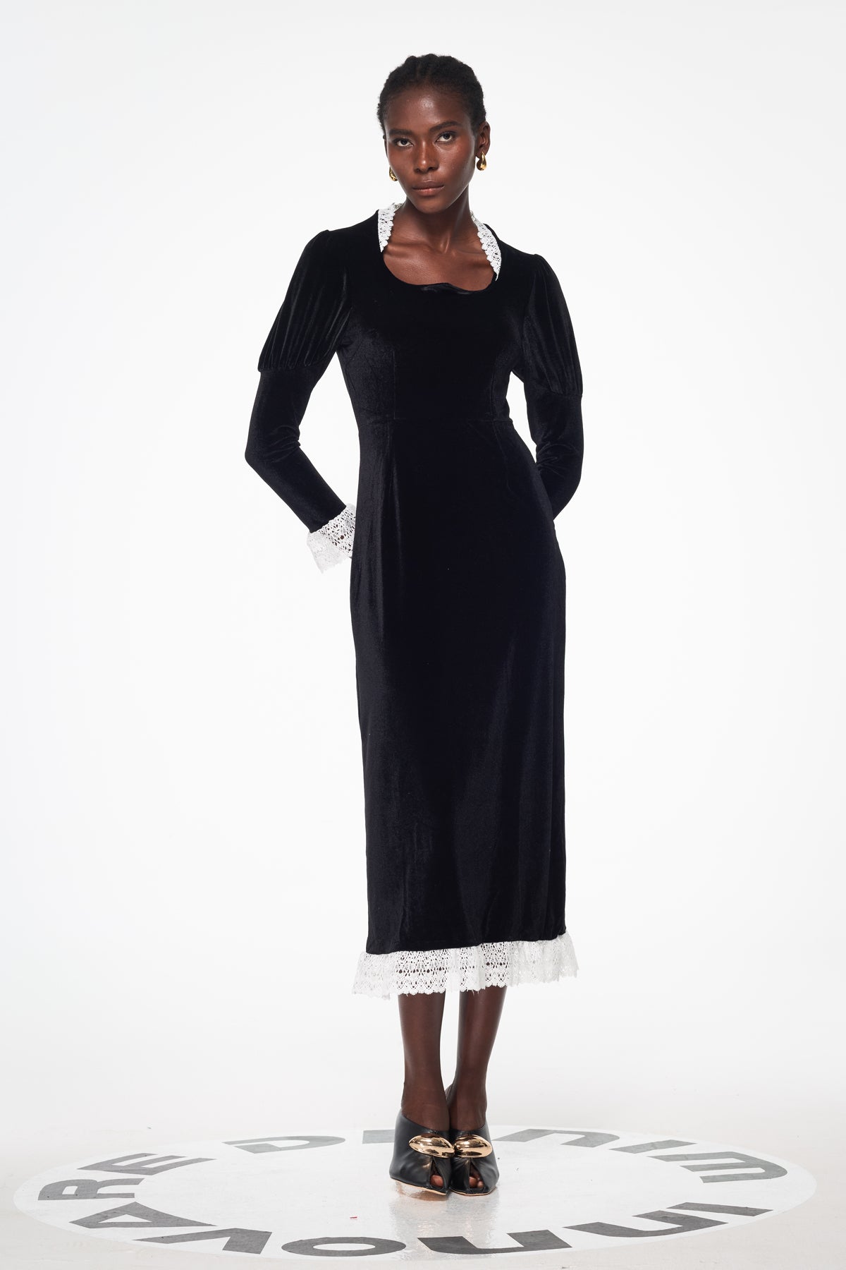 Balbinus Dantel Uzun Kollu Midi Elbise