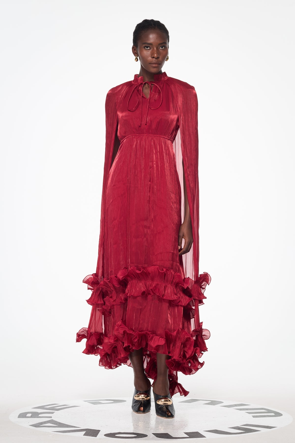 Balder Şal Fırfırlı Dantelli Maxi Elbise