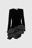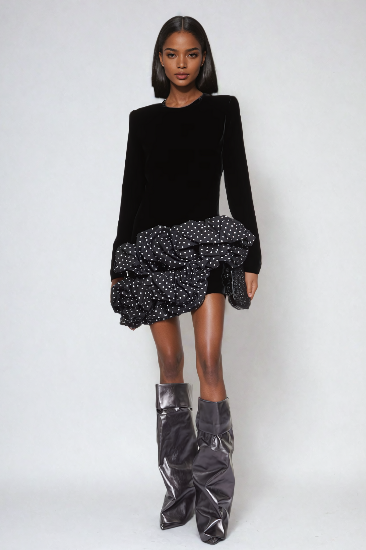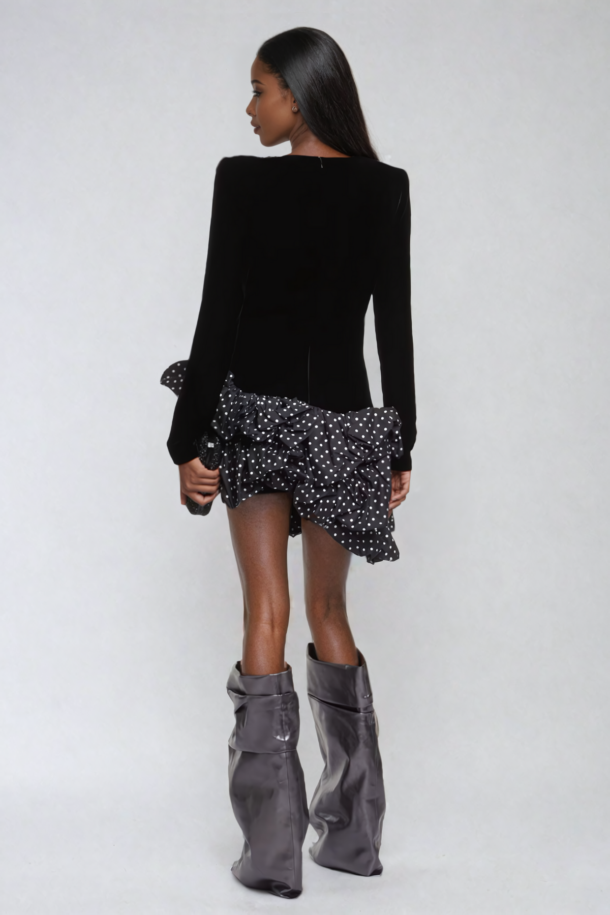 Balesego Fırfırlı Nokta Uzun Kollu Mini Elbise