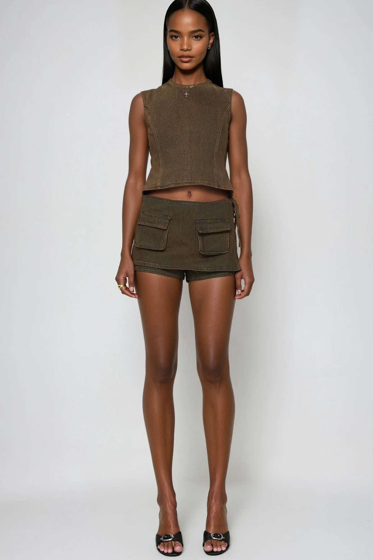 Bartholomeus Cep Deconstruct Denim Mini Etek Kahverengi