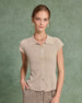 Sueña™ Bej Kısa Kollu Düğmeli Örgü Tişört