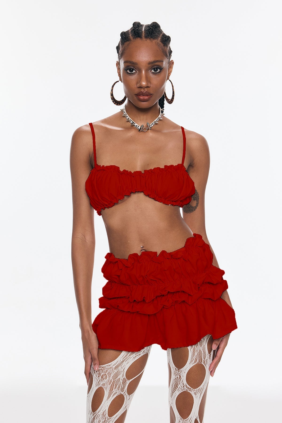 Benedict Ruffle Spagetti Etek Takımı Kırmızı