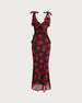 Sueña™ Siyah Çiçekli Şifon Slip Uzun Elbise
