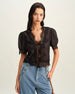 Sueña™ Siyah Kabarık Kollu Dantel Bluz