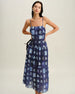 Sueña™ Mavi Çiçekli Kıvrımlı Bohem Slip Uzun Elbise