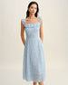 Sueña™ Mavi Kare Yaka Volanlı Midi Elbise