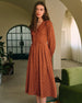 Kahverengi Puantiyeli Pileli Midi Elbise