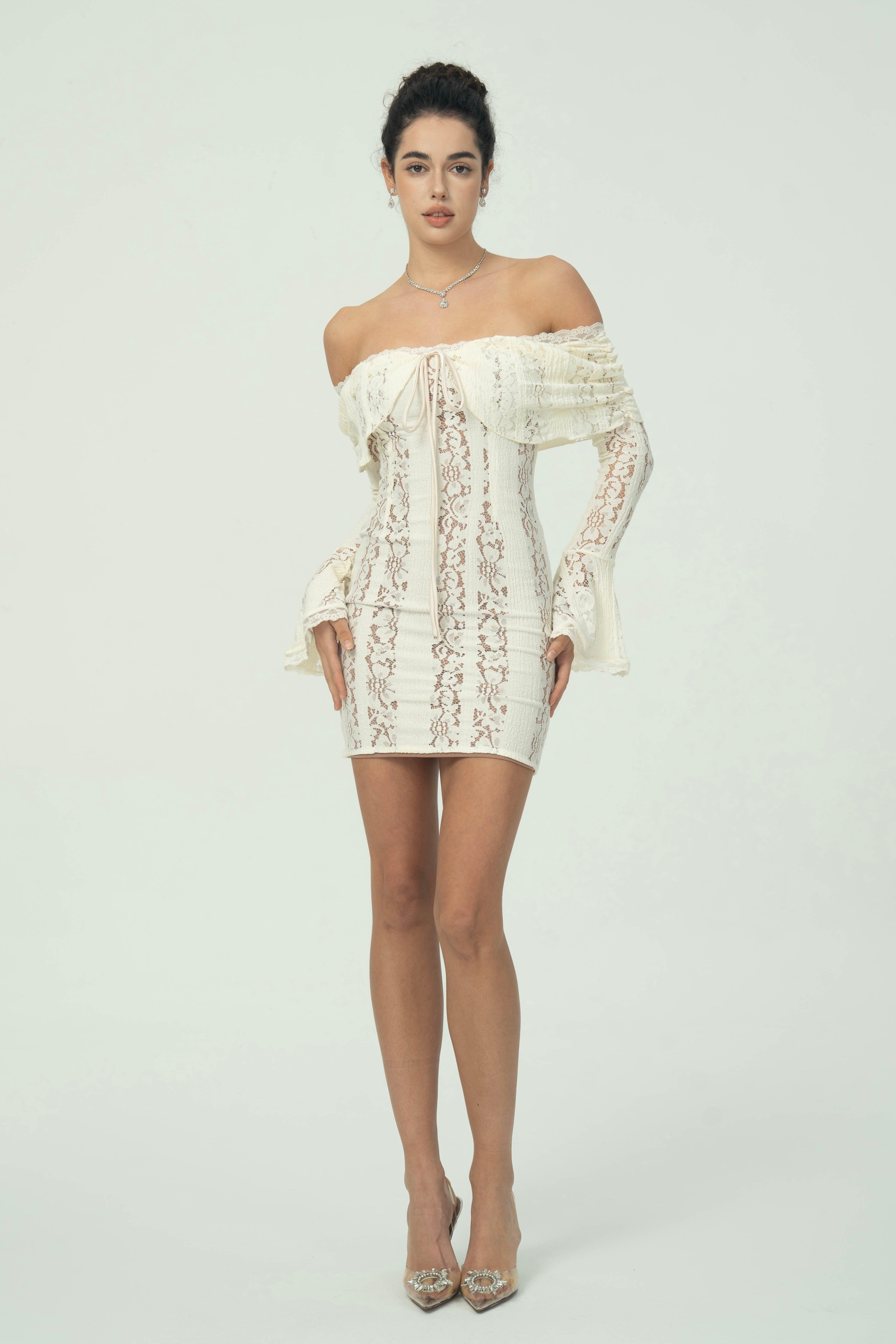Bu şık uzun kollu dantel elbise, detaylı dantel işlemeleri ve vücuda oturan kesimiyle zamansız ve sofistike bir görünüm sunar. Hem resmi hem de yarı resmi davetler için uygun olan bu parça, feminen ve modern tarzı bir araya getiriyor.