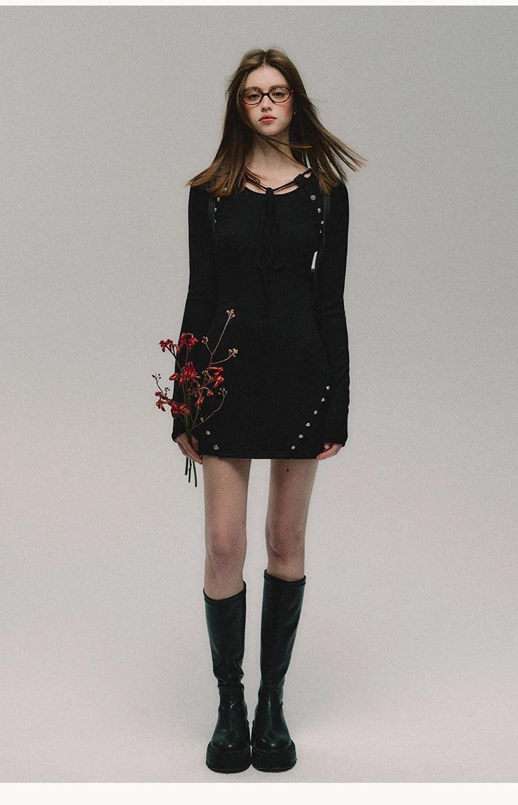Özgüven ve sofistike bir görünüm sergileyen cesur ve modern bir tasarıma sahip bu şık siyah örgü elbise ile dikkatleri üzerinize çekin. Dışarıdaki akşamlar veya şık gündüz etkinlikleri için mükemmeldir.