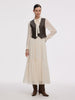 Şifon Önden Bağlamalı Uzun Elbise Ve Pu Deri Yelek İki Parçalı Set