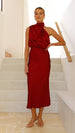 Birinci sınıf etkinlikler ve zarif düğün şenlikleri için mükemmel seçim olan Esther Maxi Elbise ile sofistike bir görünüm sergileyin. Yüksek yaka ve zarif drape detaylarına sahip bu elbise, zarif ve lüks bir görünüm sunuyor. Asimetrik omuz tasarımı çağdaş bir dokunuş katarken, elastik bel kısmı güzel bir uyum sağlar.