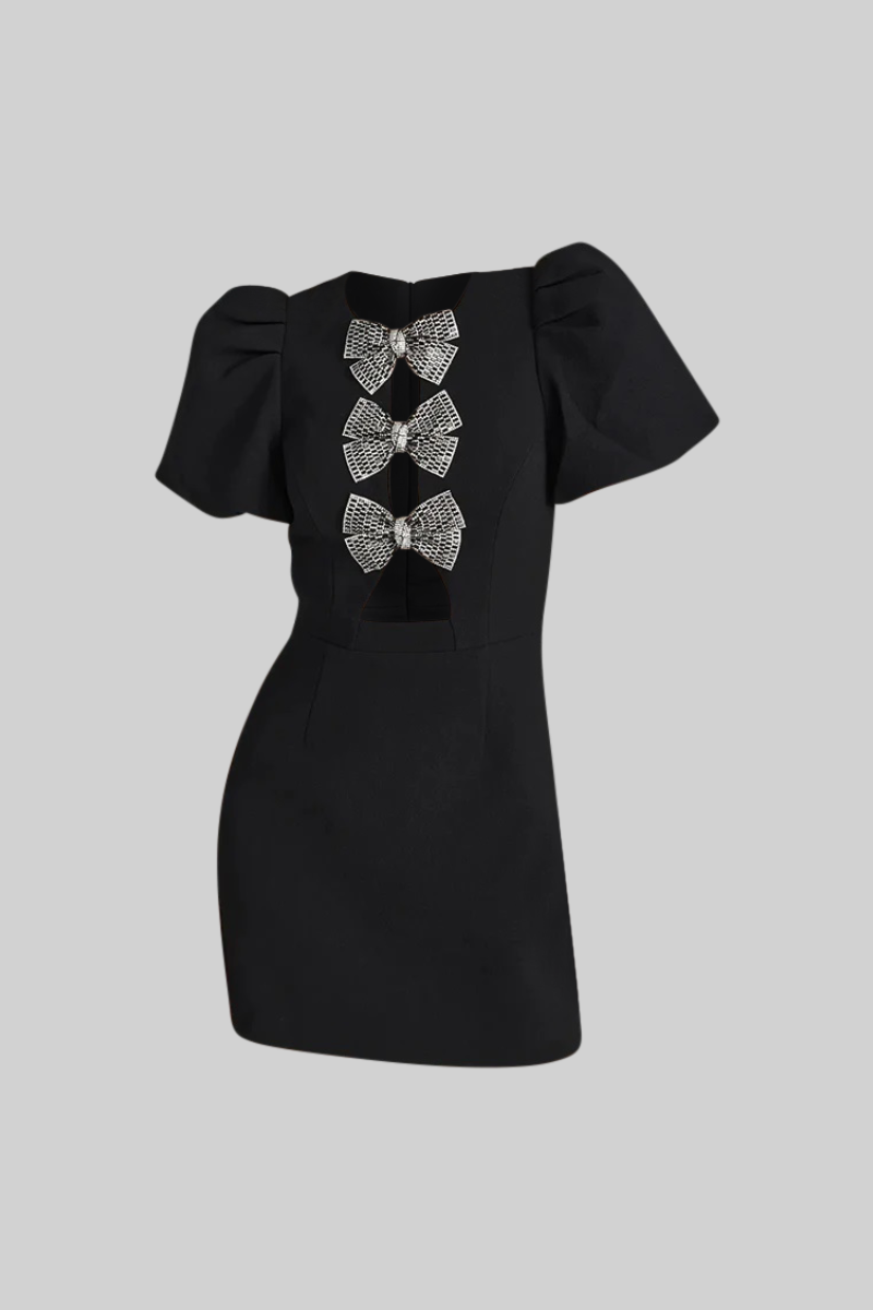 Siyah Klasik Mini Elbise – Fiyonk Detaylı