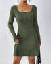 Yeşil Kare Yaka A Kesim Kazak Elbise