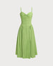 Sueña™ Yeşil Kalp Yaka Askılı Midi Elbise
