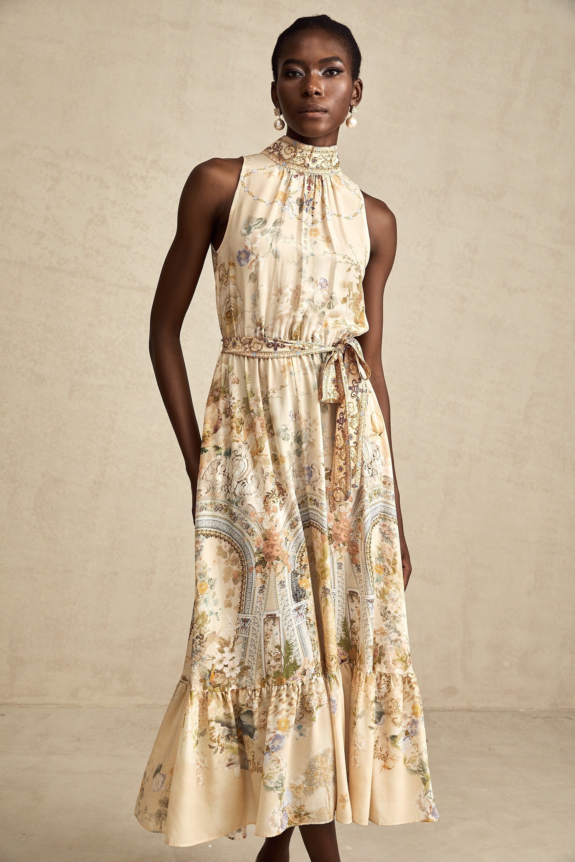 Hermine Grafik Desenli Kolsuz Midi Elbise