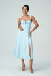 Bu şık ve modern midi elbise, resmi davetler, yaz etkinlikleri, kokteyl partileri ve akşam yemekleri için mükemmel bir seçimdir. Minimalist ama çarpıcı detaylarıyla her ortamda zarafetinizi konuşturun!