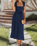 Lacivert Kare Yaka A Kesim Büzgülü Midi Elbise