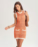 Turuncu Kontrast Yuvarlak Yaka Kazak Elbise