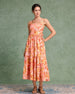 Sueña™ Turuncu Çiçekli Kare Yaka Midi Elbise
