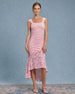 Sueña Pembe Jakarlı Vücuda Oturan Slip Uzun Elbise