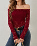 Kırmızı Çiçekli Omuzdan Açık İnce Tişört