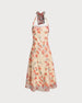 Sueña™ Kırmızı Çiçekli Kıvrımlı Askılı Uzun Elbise
