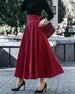 Kırmızı Cepli Kloş Midi Etek