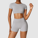 Yoga, spor salonu seansları veya günlük kullanım için uygun olan bu kısa üst, aktif giyimden günlük giyime kusursuz bir geçiş sağlar.
