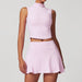 Bu kolsuz etek takımı, terzi işi silüeti işlevsel konforla birleştirerek sade çizgiler ve zahmetsiz bir şıklık sunar. Yüksek yakalı kısa üst, şık ve minimalist bir görünüm sunarken, uyumlu etek hafif bir dökümle akar; sahada özgüvenli bir duruş veya hafta sonu şık bir şekilde dışarı çıkmak için mükemmeldir.