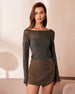 Ordu Yeşili Tekne Yaka Şeffaf Örgü Üst