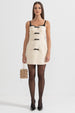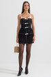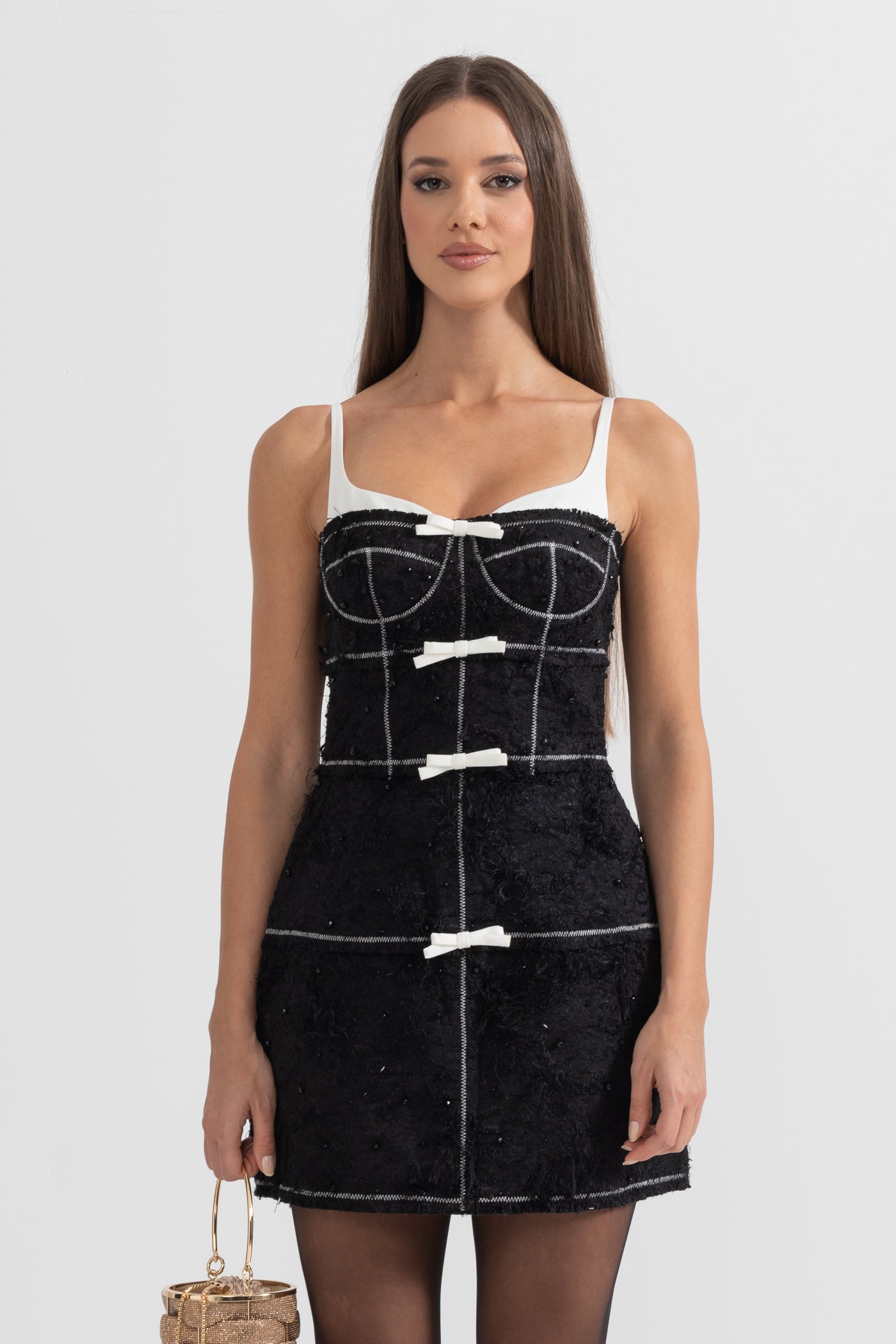 Siyah Mini Elbise – Tüy Desenli Dokulu Kumaş