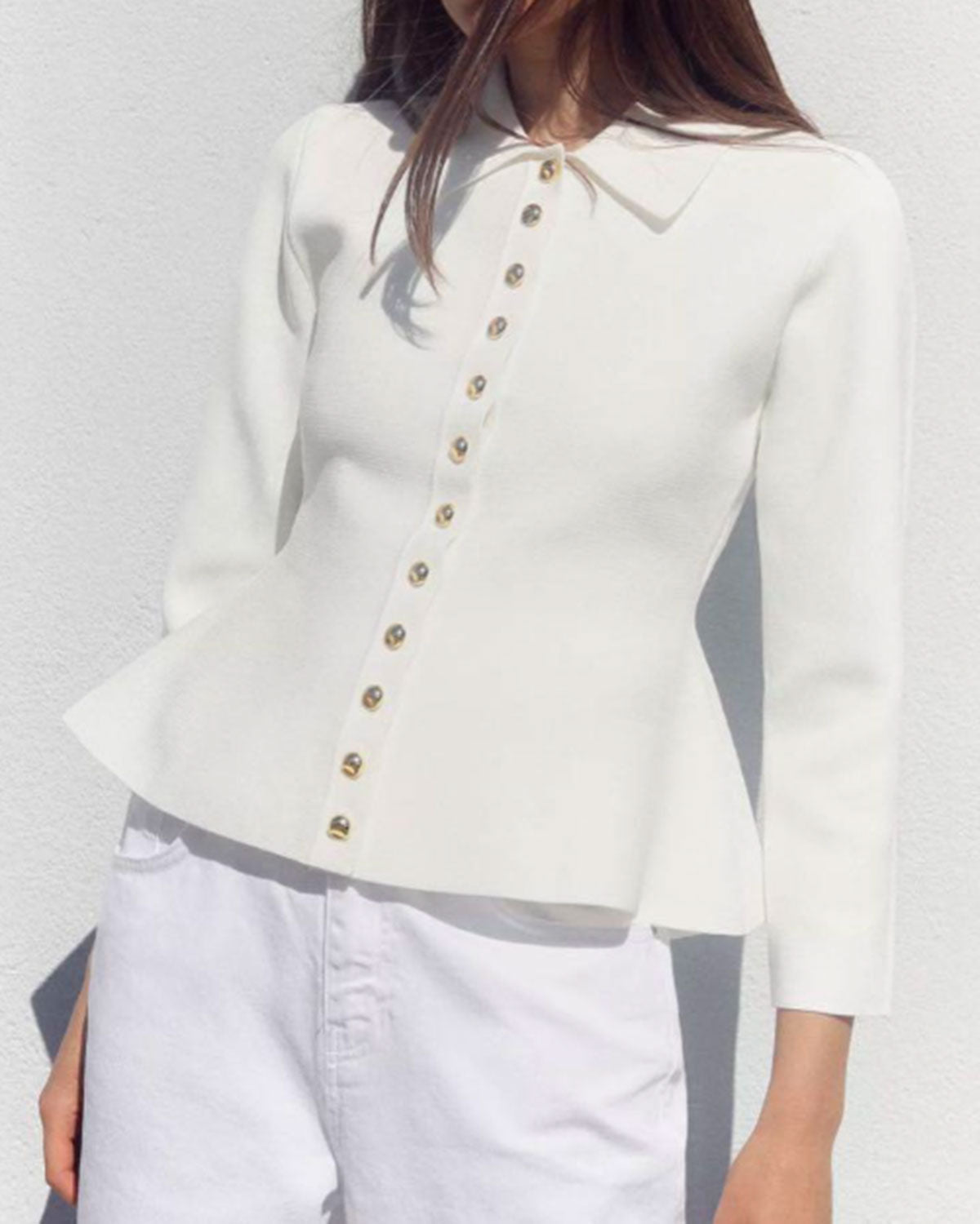 Beyaz Düğmeli Örgü Hırka