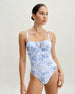 Sueña™ Beyaz Çiçekli Büzgülü Tek Parça Mayo