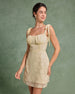 Sueña™ Sarı Jakarlı Bağcıklı Mini Elbise