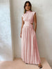 Zarif yüksek yaka tasarımı ve bel dekoltesiyle modern bir dokunuş sunan bu beyaz maxi elbise, akıcı kesimiyle hem rahatlık hem de şıklık sağlar. Özel davetler ve yaz etkinlikleri için stil sahibi bir seçim!