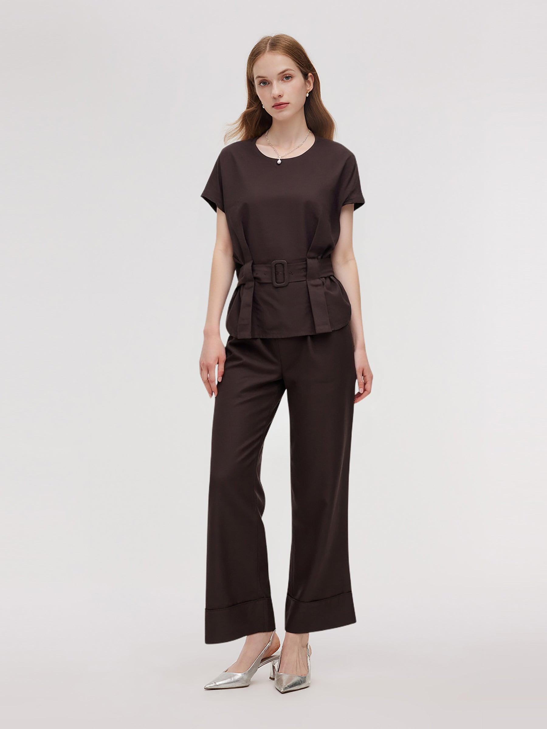 %100 Keten Bluz Ve Pantolon İki Parça Takım