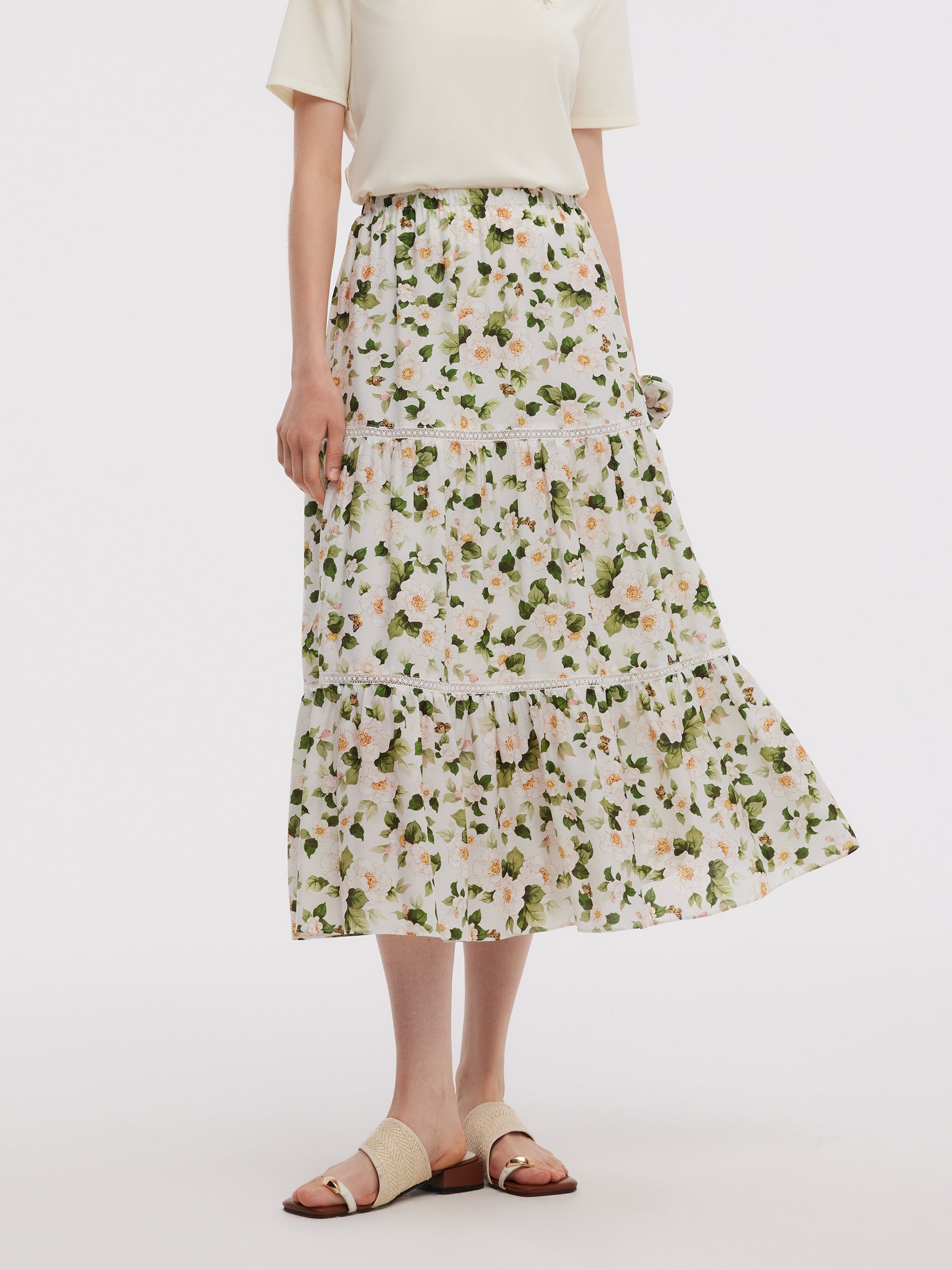 Asetat Karışımlı Çiçek Desenli Kadın Katlı Etek