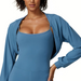 Aktif giyim katmanlamalarına modern bir yaklaşım sunan bu ceket, yüksek belli taytlar, eşofman altları veya şortlarla kusursuz bir şekilde uyum sağlayan rahat ve şık bir kesim sunar.