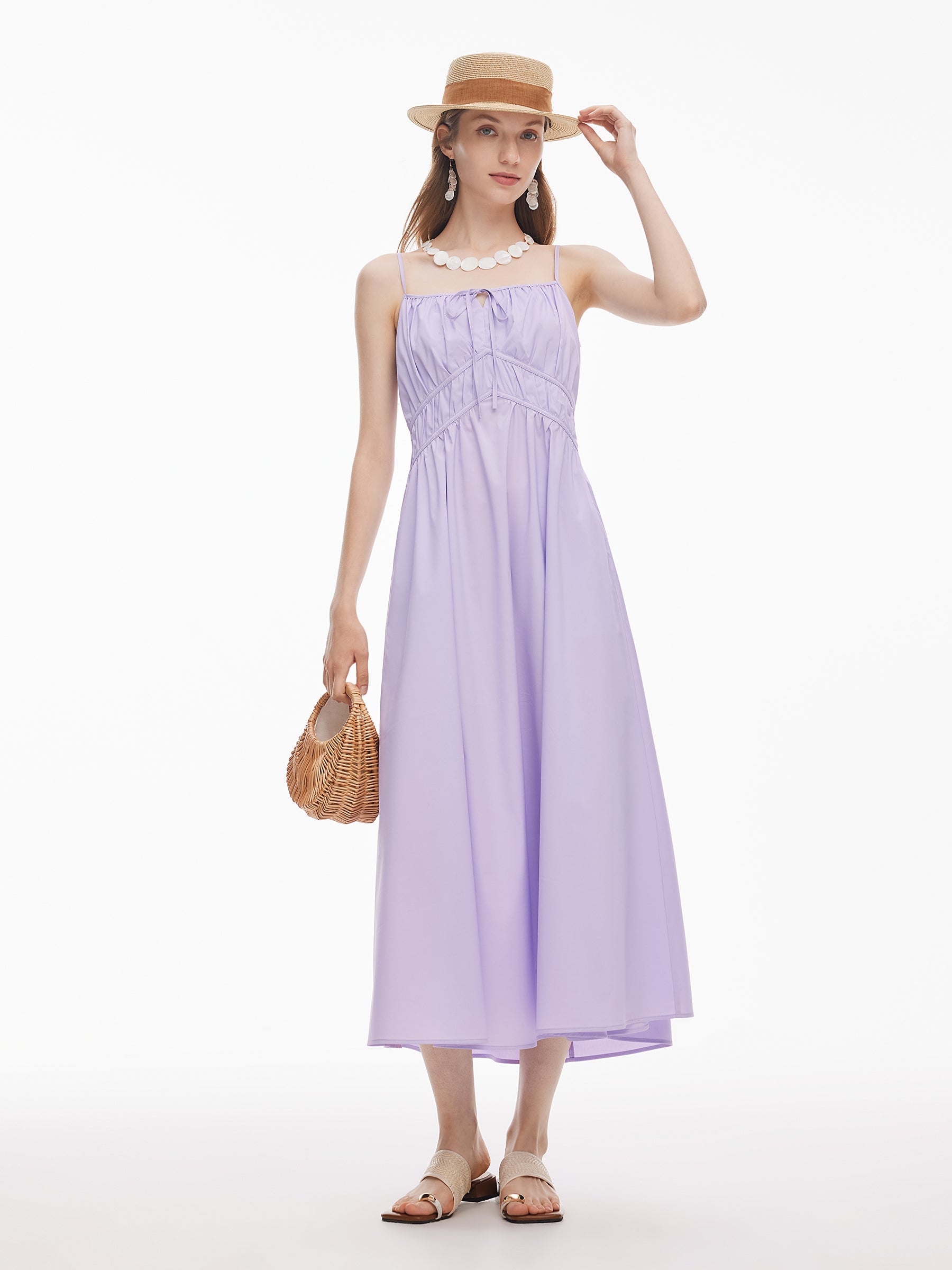 Ayarlanabilir Yakalı Kadın A Kesim Askılı Uzun Elbise