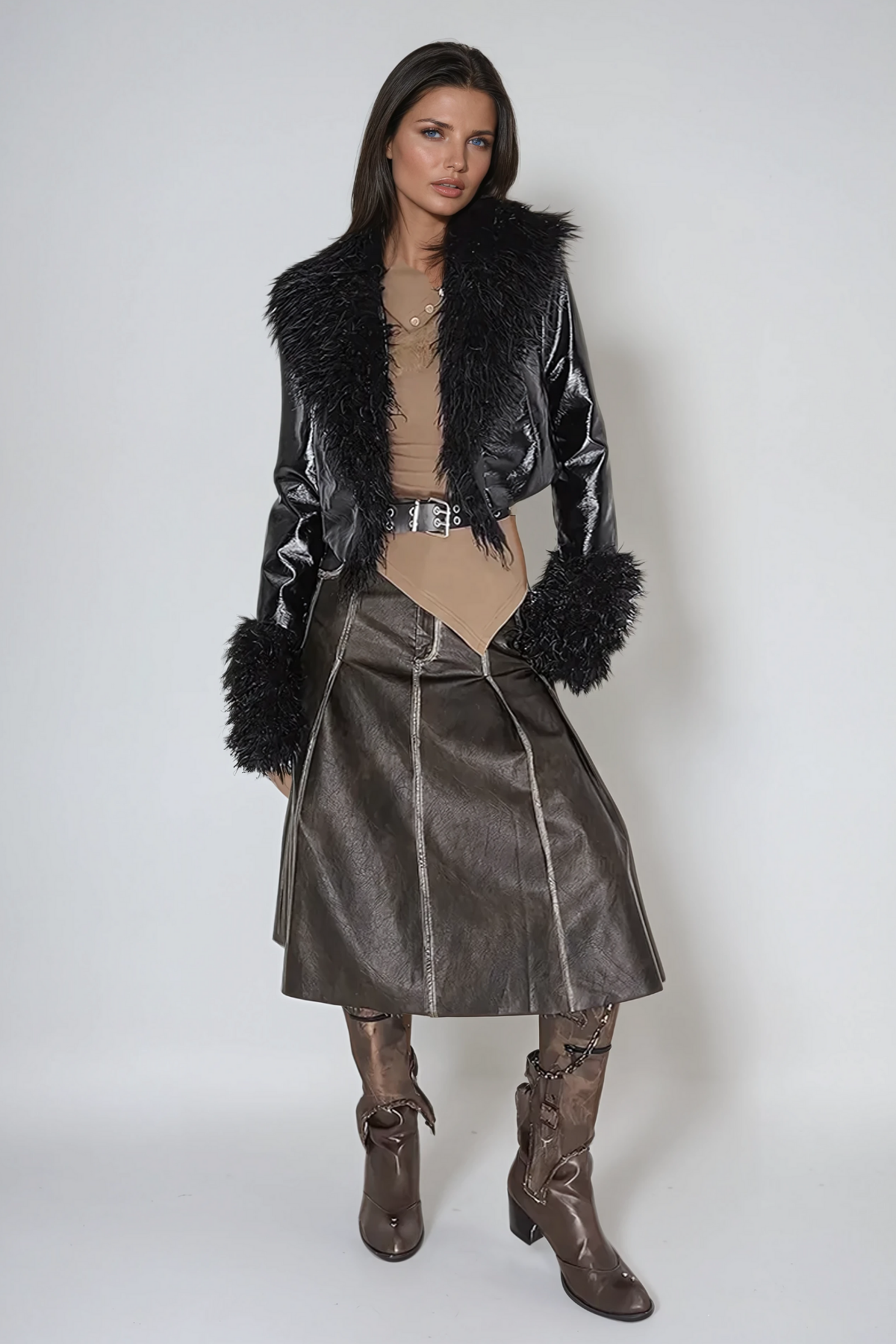 Anaya Sahte Kürk Yaka Deri Ceket