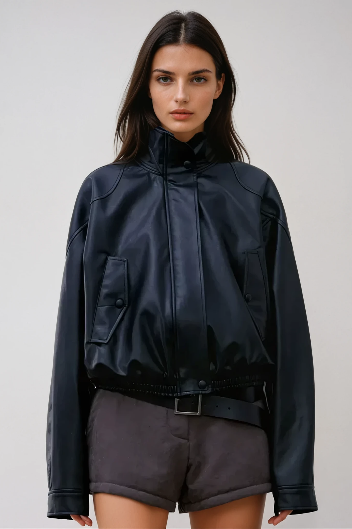 Anong Siyah Renk Yakalı Deri Ceket