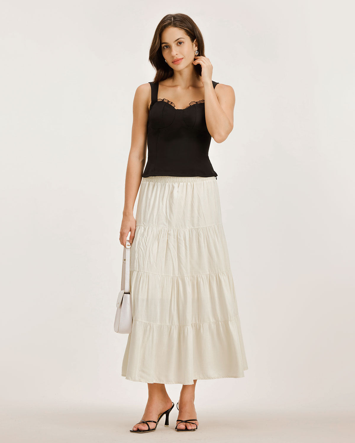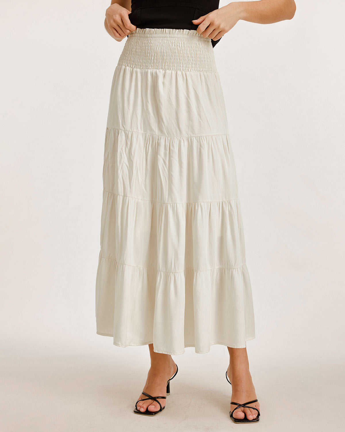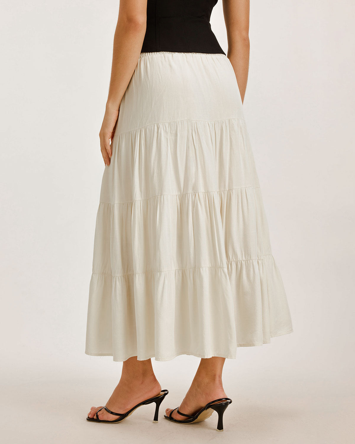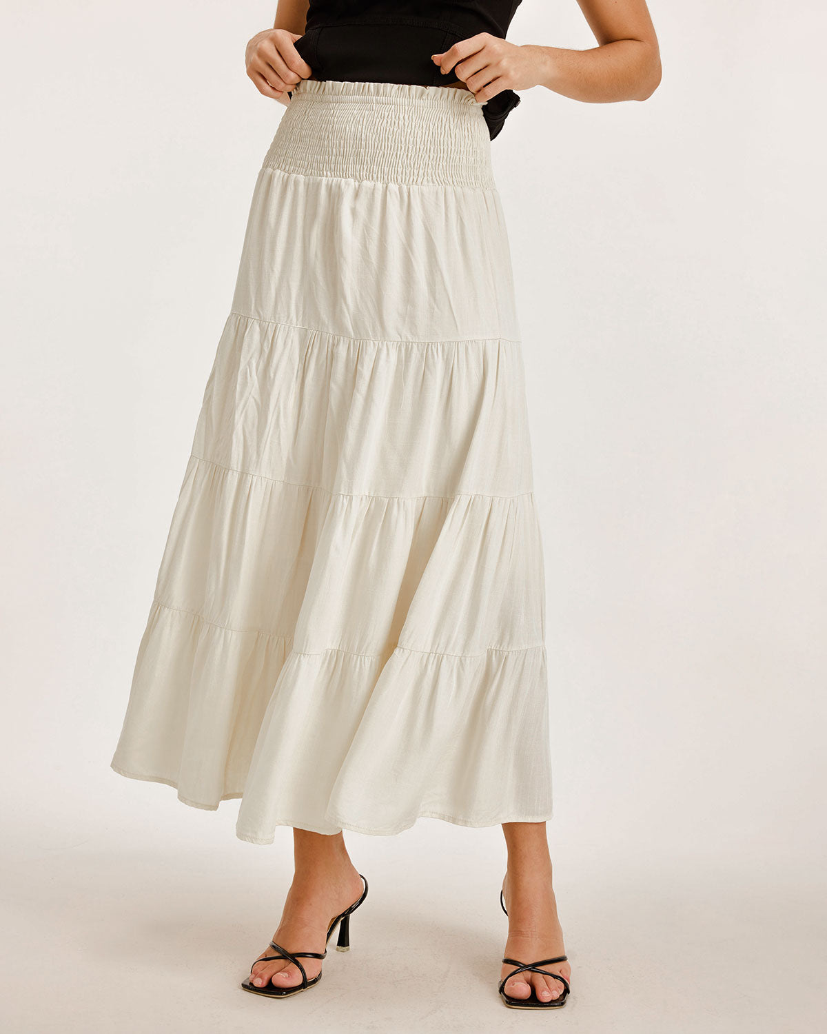 Kayısı Rengi Büzgülü Volanlı Katmanlı Etek