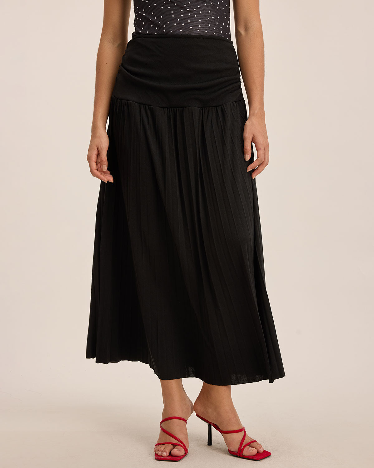 Sueña™ Siyah Lastikli Bel Pileli Midi Etek