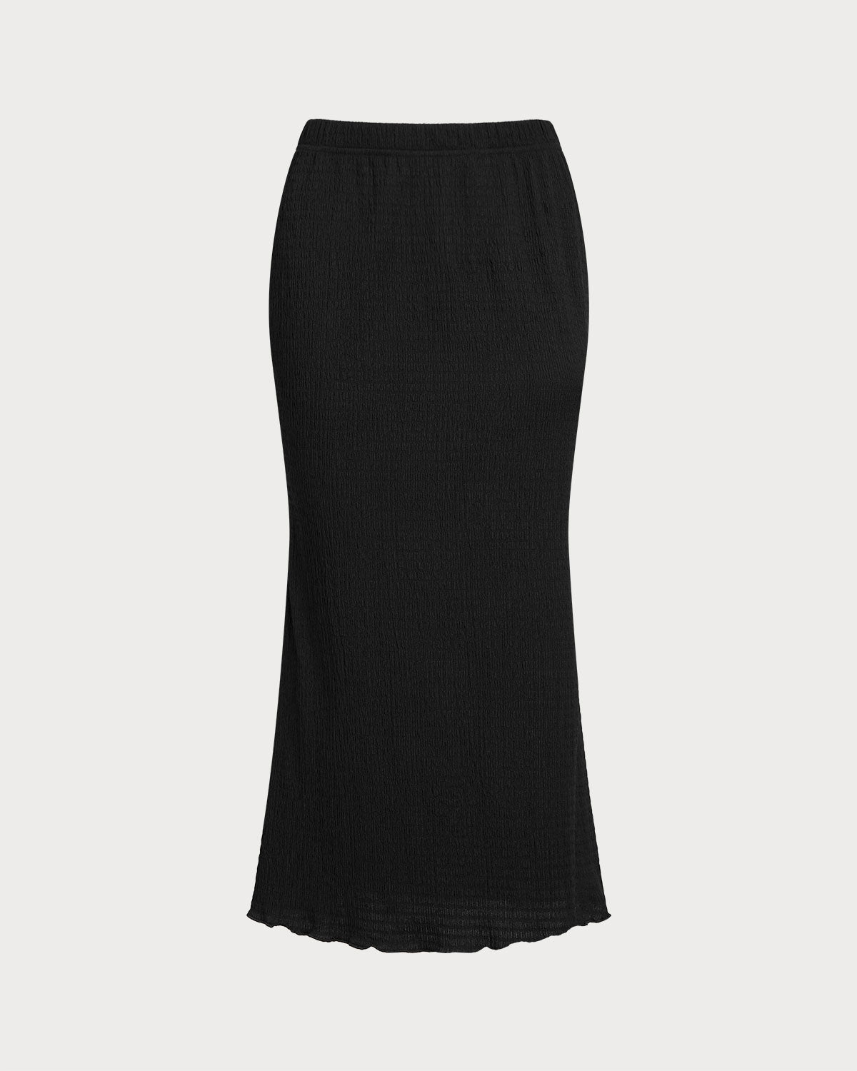 Siyah Örgü Lastikli Bel Denizkızı Midi Etek